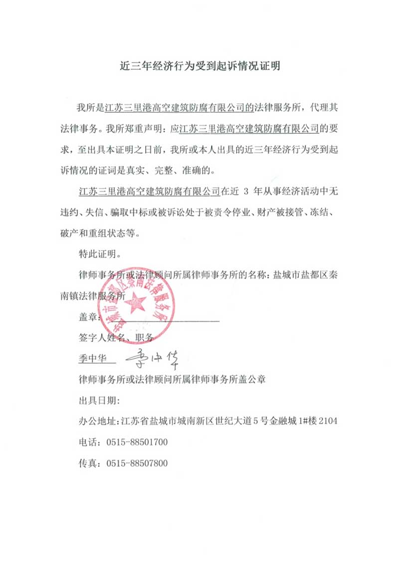 江蘇三里港高空建筑防腐有限公司