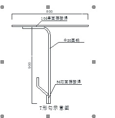 安全措施:每個倒鏈與筒壁鋼筋掛鉤處設(shè)置“T”型鉤,采用A20圓鋼制作,如右圖:該掛鉤掛在底部豎向開槽處。